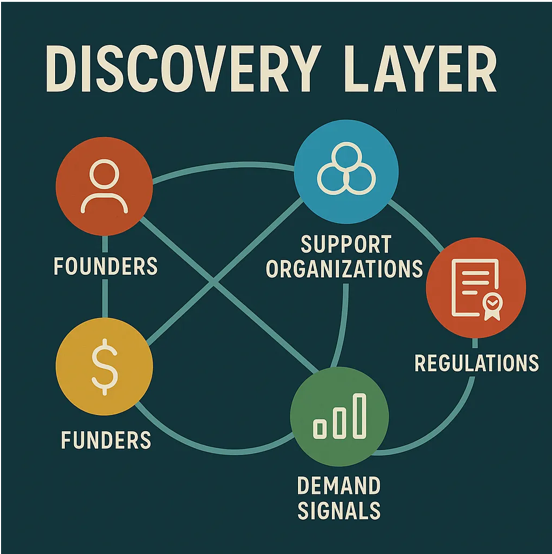We believe what’s needed is not another white paper or summit, but a real-time discovery layer. One that maps relationships between founders, funders, support organizations, regulations, and demand signals. Not just who exists, but how information, capital, and trust flow. Or don’t.